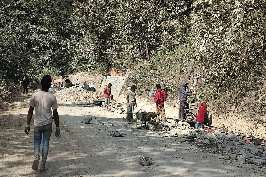 रामेछापका २३ वर्षीय दिनेश खत्री पनि दुई महिनादेखि यही सडकखण्डमा ढुङ्गा बोक्ने र गिट्टी, बालुवा मुछ्ने काम गर्दै आएका छन् । उनले रामेछापबाट बागलुङसम्म रहरले नभई बाध्यताले आउनुपरेको बताए । उनी गाउँ नजिक रोजगार नपाएपछि दुई महिना अगाडि यहाँ आएको बताउँछन् । चुनावका लागि गाउँबाट भोट हाल्न नेताहरूको फोन आए पनि वास्तै नगरी काम गरिरहेको खत्रीको भनाइ छ ।