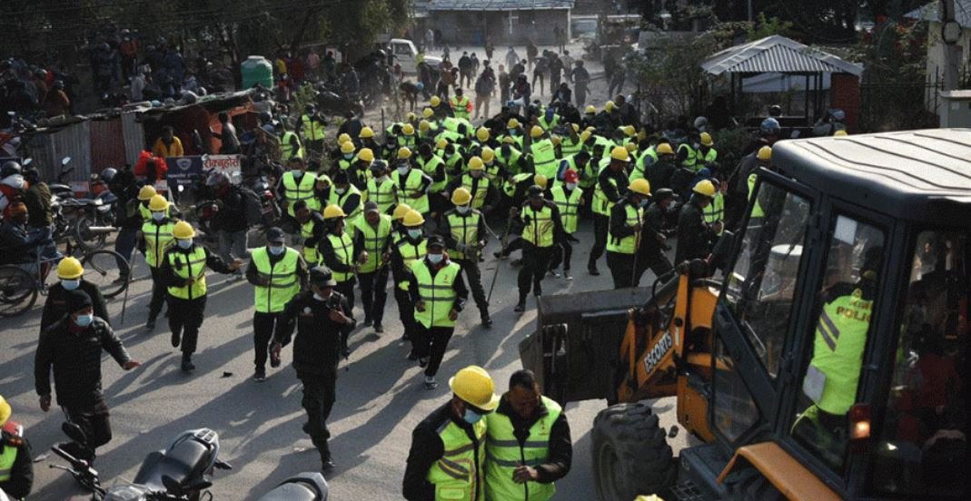 त्यस्तै समितिको समन्वयनमा महानगरपालिकाले त्यहाँ डोजर चलाउन प्रहरी परिचालन गरेको काठमाडौं महानगरपालिकाका नगर प्रहरी उपरीक्षक दिनेश अर्यालले जानकारी दिए।