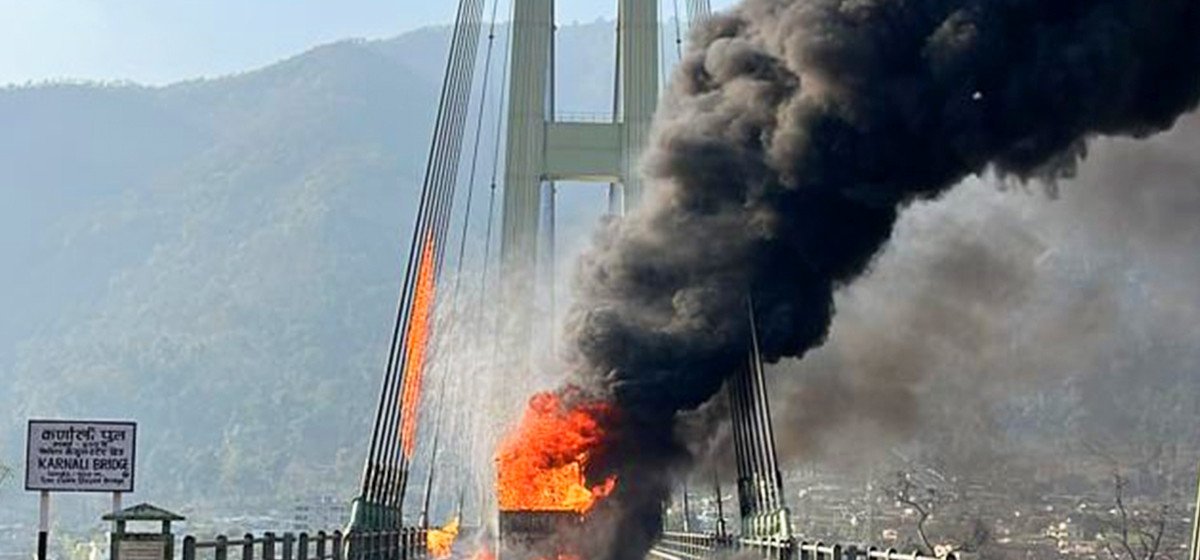 कैलाली।सोमबार भएको आगलागीबाट आंशिकरूपमा क्षति भएपछि कर्णाली पुलमा सवारीसाधन आवागमन बन्द गरिएको छ । प्राविधिकको विशेषज्ञ टोलीले पुलको परीक्षण गरेरमात्र सवारी आवागमन सञ्चालन गर्न सकिने सडक डिभिजन कार्यालय नेपालगञ्जले जनाएको छ । आगलागीबाट पुलको १४ ‘सपोट’ डोरीमा आंशिक क्षति पुगेको छ ।