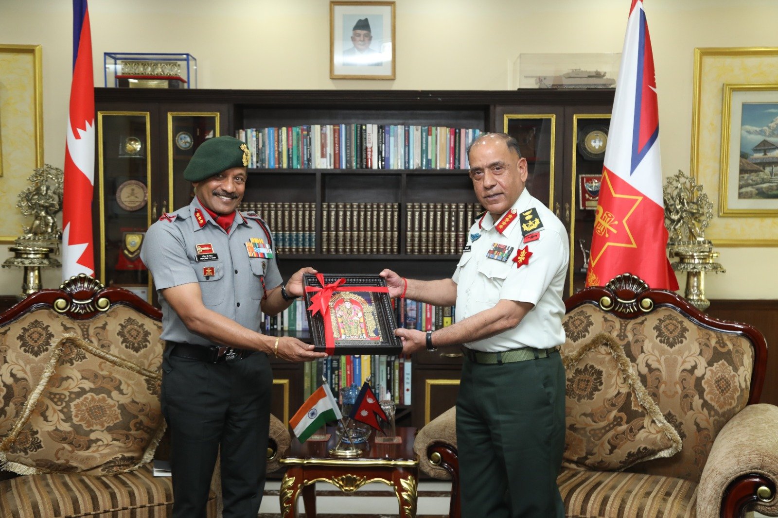 काठमाडौं । प्रधानसेनापति प्रभुराम शर्मासँग भारतीय सेनाका लेफ्टिनेन्ट जनरल प्रदीप चन्द्रन नायर एके सिंहले शिष्टचार भेटवार्ता गरेका छन् । नेपाली सेनाको मुख्यालय जङ्गी अड्डामा भएको शिष्टाचार भेटवार्तामा उनीहरुबीच द्विपक्षीय सम्बन्धलाई सुदृढ गर्नेलगायत विषयमा छलफल भएको थियो ।
