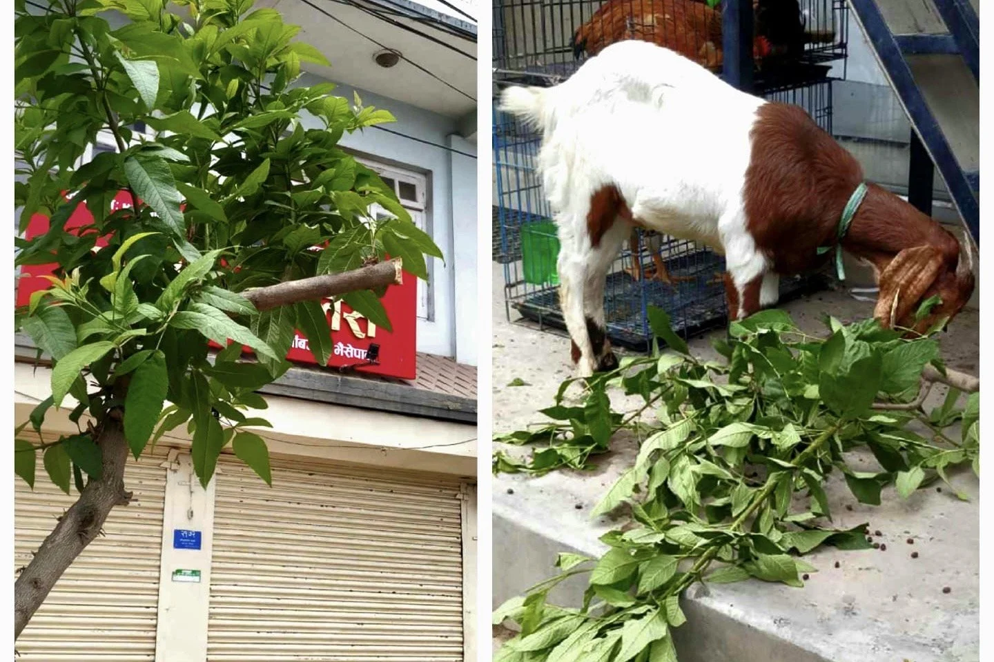महानगर प्रहरी गस्तीमा हिँडिरहेको अवस्थामा रुखको हाँगा काटेर बाख्रालाई खुवाएको देखेपछि जरिवाना तिराइएको महानगर प्रहरी प्रमुख सिताराम हाछेथुले बताए