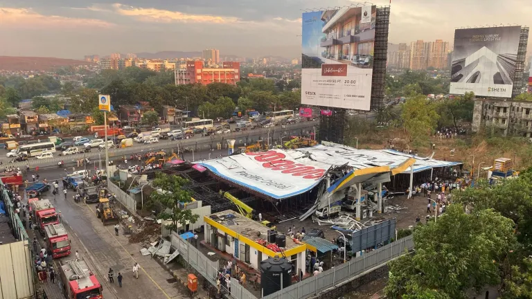 काठमाडौं। भारतको मुम्बईमा अचानक आएको आँधीका कारण एउटा विशाल होर्डिङ बोर्ड भत्किँदा १४ जनाको मृत्यु भएको छ । नव भारत टाइम्सका अनुसार दुर्घटनामा परी करिब ७४ जना घाइते भएका छन् । प्रहरीका अनुसार ७० मिटर लामो होर्डिङ बोर्ड सहरको घर र पेट्रोल स्टेसनमा खसेको थियो ।