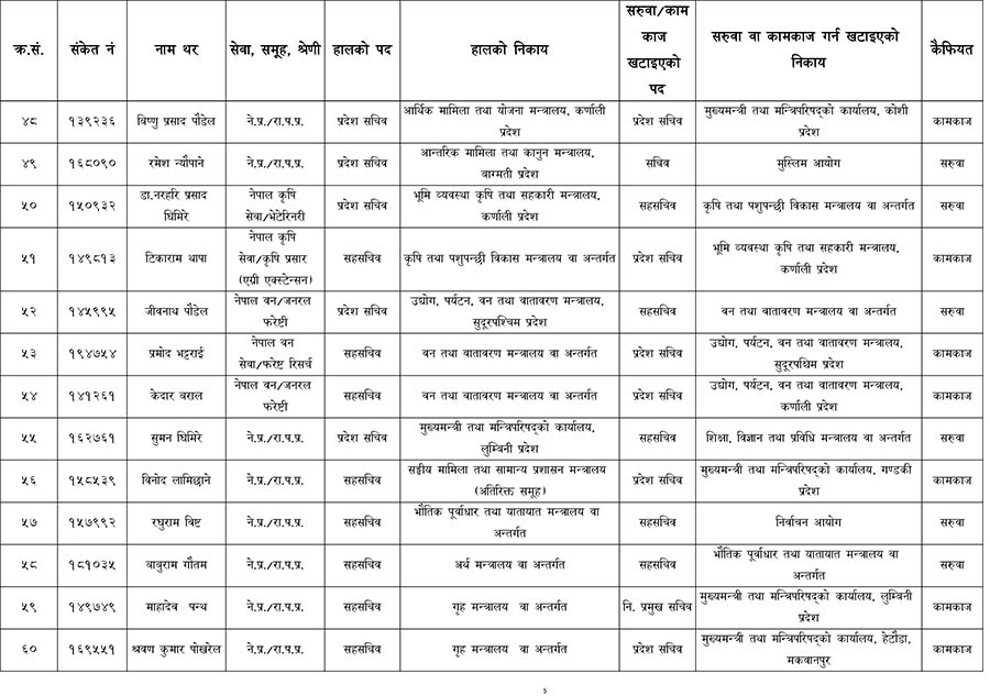 एकैपटक ६० सहसचिवको सरुवा, को कहाँ ?