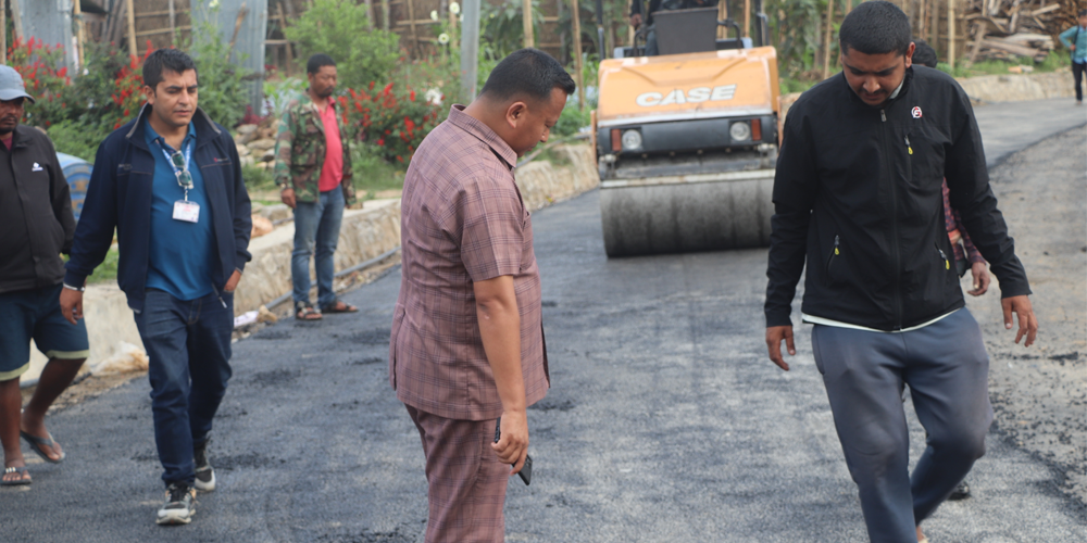 ‘तिवारीभञ्ज्याङ–अधेँरीघाट सडक कालोपत्र थालेका छौँ’, प्रशासकीय अधिकृत भट्टराईले भने, ‘सडकको काम दुई प्याकेजमा भइरहेको छ । कालोपत्रको काम समयमा सम्पन्न गराउने लक्ष्यका साथ काम भइरहेको छ । यो आर्थिक वर्षमा एक हजार तीन सय मिटर कालोपत्र हुन्छ ।’ सडक सङ्घीय समपूरक अनुदान, प्रदेश समपूरक अनुदान र गाउँपालिकाको लागत साझेदारीमा कालोपत्र थालिएको हो ।