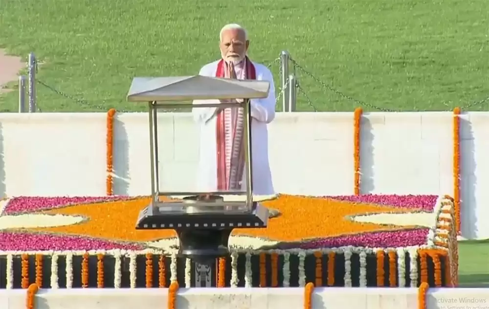 मोदीले महात्मा गान्धीको समाधिस्थलमा पुष्पहार अर्पण गरेका थिए ।मोदीले आज साँझ ७: १५ बजे राष्ट्रपति भवनमा आफ्नो मन्त्रिपरिषद्सहित शपथ लिनेछन् । राजघाटपछि नरेन्द्र मोदी पूर्वप्रधानमन्त्री अटल बिहारी वाजपेयीको समाधिमा पुगेर पुष्पहार अर्पण गरेका थिए ।