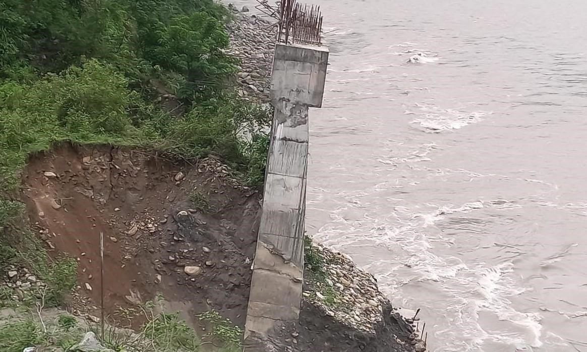 ५० करोड १४ लाखमा धाप्लाङघाटमा निर्माणाधीन पक्की पुलको खम्बा बाङ्गियो