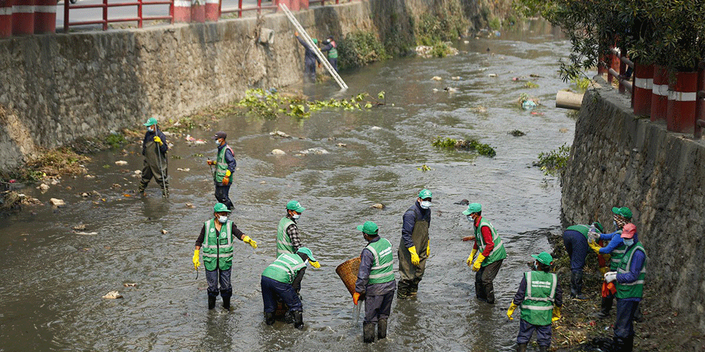 नदी सफाइ गर्दै काठमाडौं महानगर