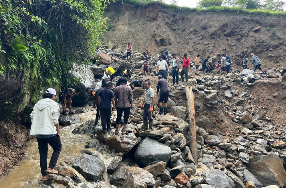 वर्षाका कारण पाँचधारे–भोजपुर सडकको केही भाग राउतेखोलाले बगाएपछि श्रमदान गरेर सञ्चालनमा ल्याइएको हो ।
