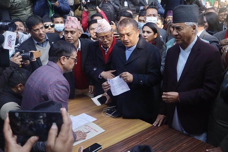 आज दिउँसो सिंहदरबारस्थित दलको कार्यालयमा संसदीय दलको नेताका लागि सभापति देउवा र महामन्त्री थापाले मनोनयन दर्ता गराएका हुन् ।
