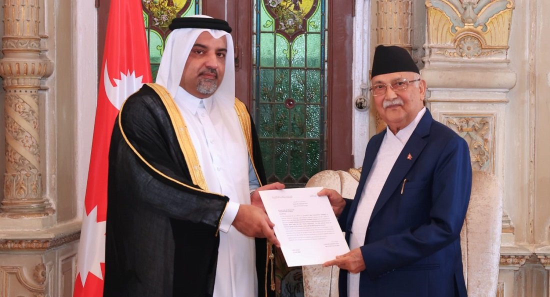 प्रधानमन्त्री ओलीसमक्ष नेपालका लागि कतारका राजदूत मिसल मोहम्मद अल अन्सारीले प्रधानमन्त्री तथा मन्त्रिपरिषद्को कार्यालय, सिंहदरबारमा शिष्टाचार भेटगरी उक्त निमन्त्रणा हस्तान्तरण गरेका हुन्।