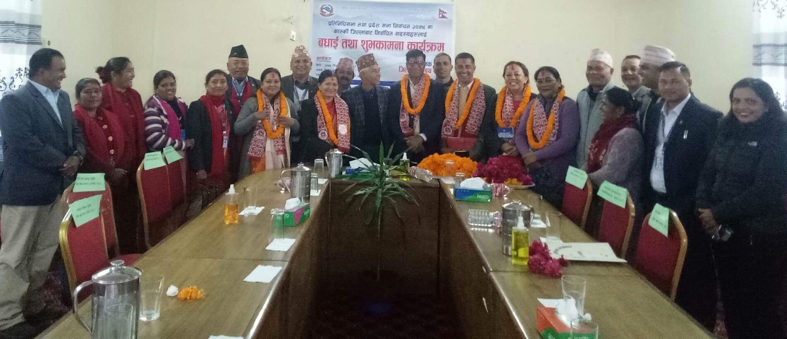 पोखरा, ८ पुस । कास्कीबाट प्रतिनिधि सभा तथा गण्डकी प्रदेश सभा सदस्यमा निर्वाचित सांसदलाई बधाई तथा सम्मान व्यक्त गरिएको छ ।