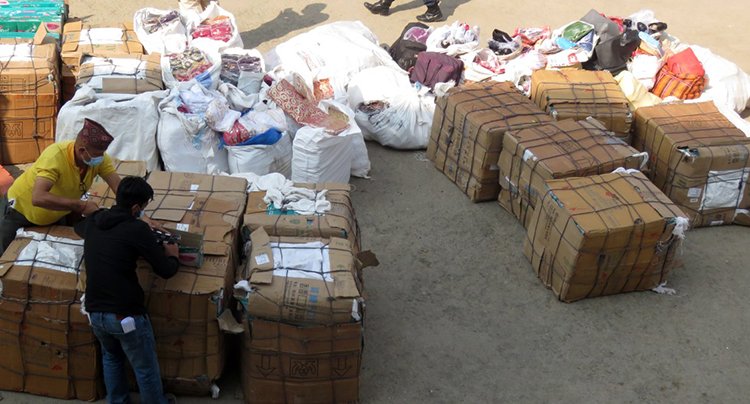 यसैगरी खाने बदाम एक प्याक (एक बोरा अन्दाजी २० किलो) अन्दाजी मूल्य रु २० हजार, रोलको कपडा भएको बोरा थान चार (अन्दाजी सात सय मिटर)को अन्दाजी मूल्य रु एक लाख १८ हजार पाँच सय, फोटो राख्ने फ्रेम भएको कार्टुन दुई थान (एक ठूलो एक सानो)को अन्दाजी मूल्य रु १० हजार तथा फेन्सी कपडा भएको बोरा पाँच थान (कुर्ता सरवाल सेट दुई सय १३ थान, टप्स सेट ३६ थान, टप्समात्र थान २१ थान)को अन्दाजी मूल्य रु ६८ हजार गरी जम्मा रु छ लाख ९६ हजार पाँच सय बराबरको रहेका प्रहरीले जनाएको छ ।