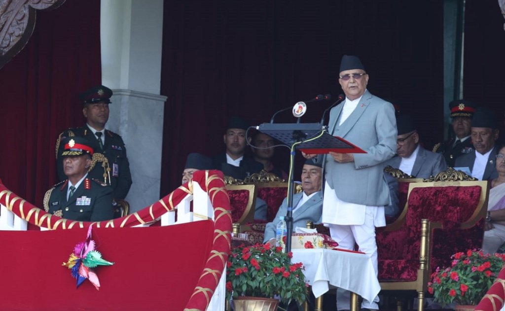 बिहीबार सैनिकमञ्च टुँडिखेलमा संविधान दिवसको मूल समारोहलाई सम्बोधन गर्दै प्रधानमन्त्री ओलीले विकासका लागि स्थायित्व चाहिने उल्लेख गर्दै वर्तमान सरकार संविधानलाई समयानुकल बनाउन लागिपरेको बताए।