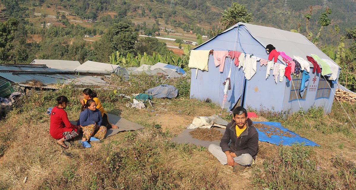 धनमायाको भन्दा कम्ता छैन सुनबहादुर तामाङको पीडा । भूकम्पले बाह्रबिसेको घर भत्काइदियो, अनुदानमा बन्दै गरेको घरमा बस्नसमेत पाउनुभएन । बाढीपहिराले डाँडै बग्यो, चार वर्षदेखि टेन्टभित्र श्रीमती आइतमाया तामाङसहित छ जनाको परिवार जसोतसो गुजारिरहेका छन् ।