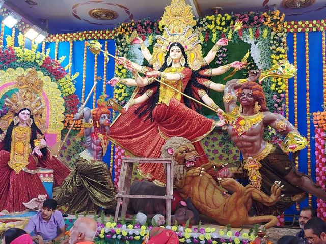 बडादशैँको आगमनसँगै मिथिलाञ्चलको विभिन्न गाउँ शहरमा बनाइएका दुर्गा भवानीको मूर्ति सप्तमी तिथिमा पूजा अर्चना गर्दै अनावरण गरिएको जलेश्वर नगरपालिका–२ का दुर्गा मूर्ति पूजारी ललित झाले बताउनुभयो ।