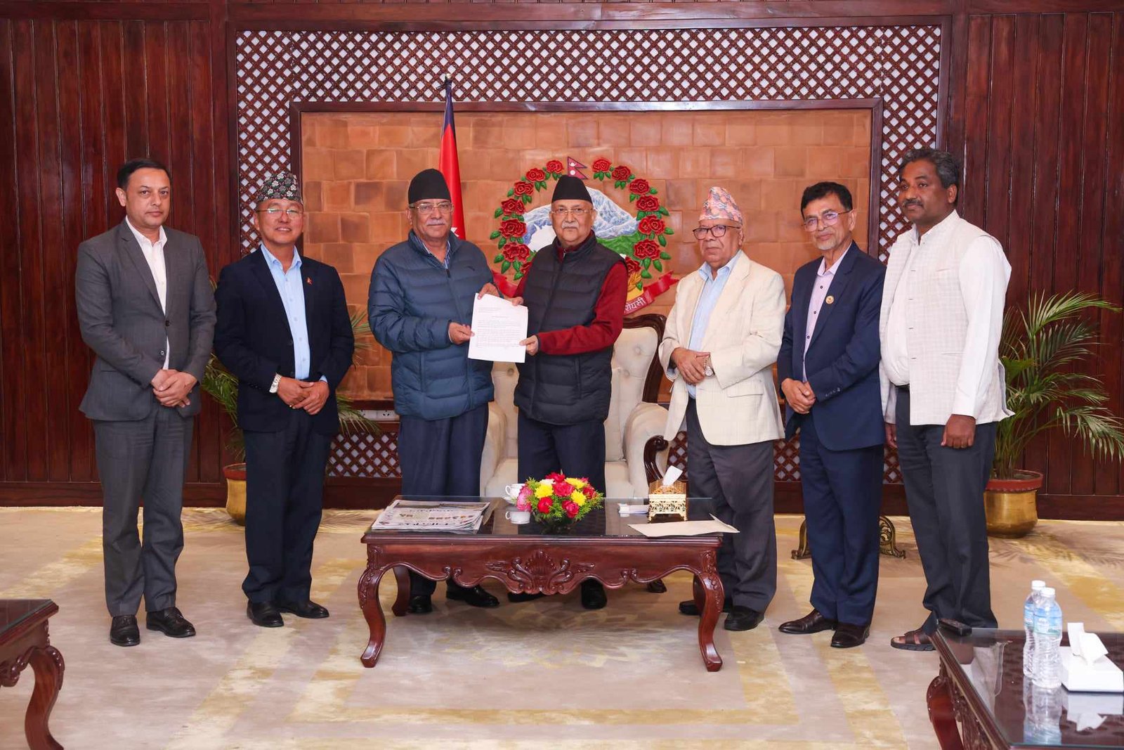 सोमबार साँझ बालुवाटार पुगेर प्रधानमन्त्री केपी शर्मा ओलीलाई भेटेर नेकपा माओवादी केन्द्रका अध्यक्ष पुष्पकमल दाहाल ‘प्रचण्ड’, रास्वपाका उपाध्यक्ष डीपी अर्याल, नेकपा एसका अध्यक्ष माधव कुमार नेपाल, उपाध्यक्ष राजेन्द्र पाण्डे, राप्रपा अध्यक्ष राजेन्द्र लिङ्देन, प्रभु शाहलगायतले ज्ञापन पत्र बुझाएका हुन् ।