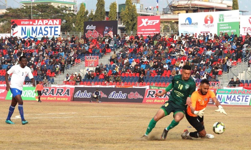 पोखरा, १८ पुस । पोखरा–पोखराको मैदानमा पहिलो उपाधिको खोजीमा रहेको विभागीय त्रिभुवन आर्मी क्लब फेरि एकपटक अभागी बन्यो । पोखरामा दोस्रो पटक उपाधिको खोजीमा रहेको संकटाले आर्मीको उपाधि उचाल्ने सपनालाई प्रिक्वार्टरफाईनलबाटै निराश बनायो । नयाँ खेलाडी सम्मिलित संकटाले ‘स्किल फुल’ गेम देखाएपछि चार पटक पोखराको मैदानमा फाइनल खेलेको आर्मी सोमबार ३–१ गोलमा पराजित हुदैं बाहिरियो । आर्मीले आहा रारा गोल्डकपको उपाधि खडेरी तोड्न यो वर्ष पनि असमर्थ रह्यो । संकटाले १९ औं संस्करणको आहा रारा गोल्डकप उचालेको थियो । यद्यपि यो सहभागिता भने छैटौं हो । सेमिफाईनल प्रवेश गरेको संकटाले फाइनल प्रवेशको लागि अर्को विभागीय क्लब सशस्त्र प्रहरी बल(एपीएफ क्लब) सँग खेल्ने छ ।