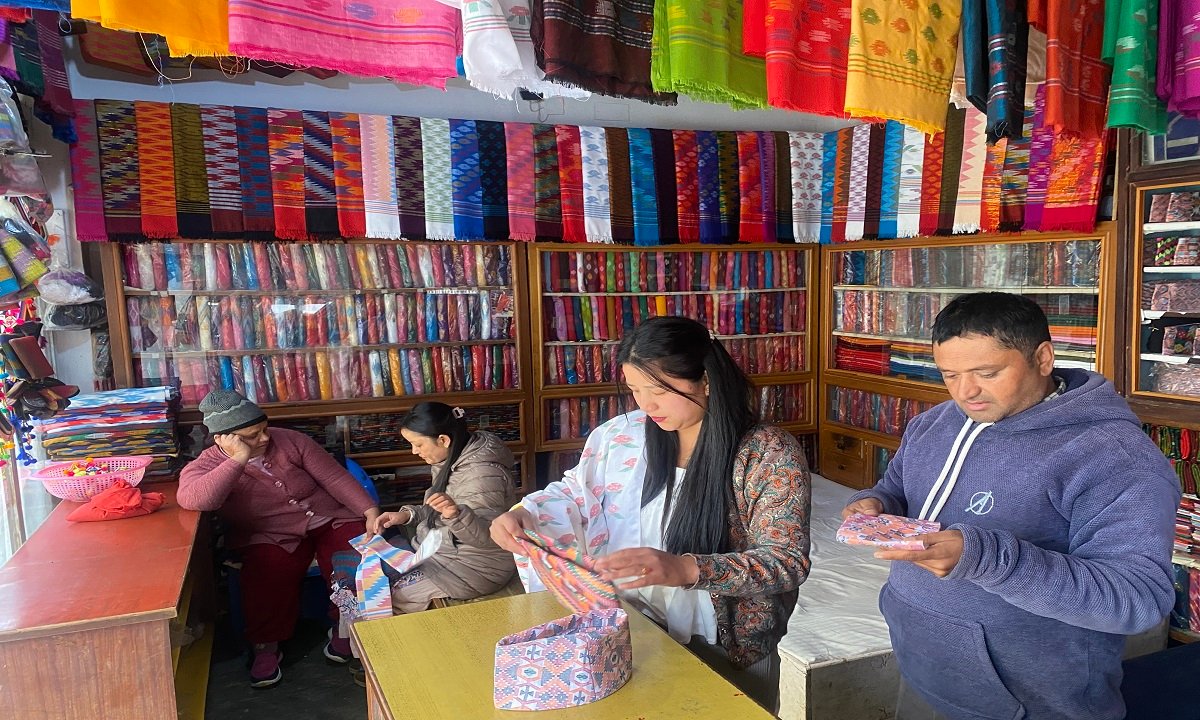तेह्रथुमको म्याङलुङ नगरपालिका–१ रतनपुरकी लक्ष्मी लिम्बूले विदेशमा रहेका आफ्ना आफन्तलाई हातले बुनेका तेह्रथुमे ढाका कपडाका सामान कोसेलीको रूपमा पठाउने गरेको बताए ।