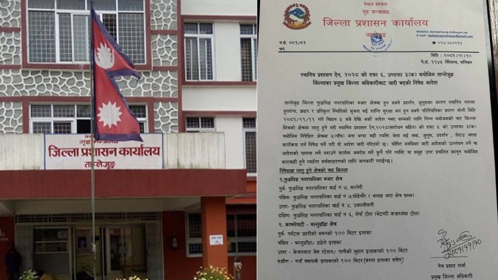 ताप्लेजुङ सदरमुकाम र आसपासका क्षेत्रमा प्रशासनद्वारा निषेध आदेश जारी