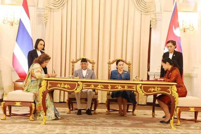 थाइल्याण्डको औपचारिक भ्रमणमा रहनुभएका प्रधानमन्त्री केपी शर्मा ओली र थाइल्याण्डका प्रधानमन्त्री पे थिङ् शिनावात्को उपस्थितिमा आज ती समझदारीपत्रमा हस्ताक्षर भएका हुन् ।