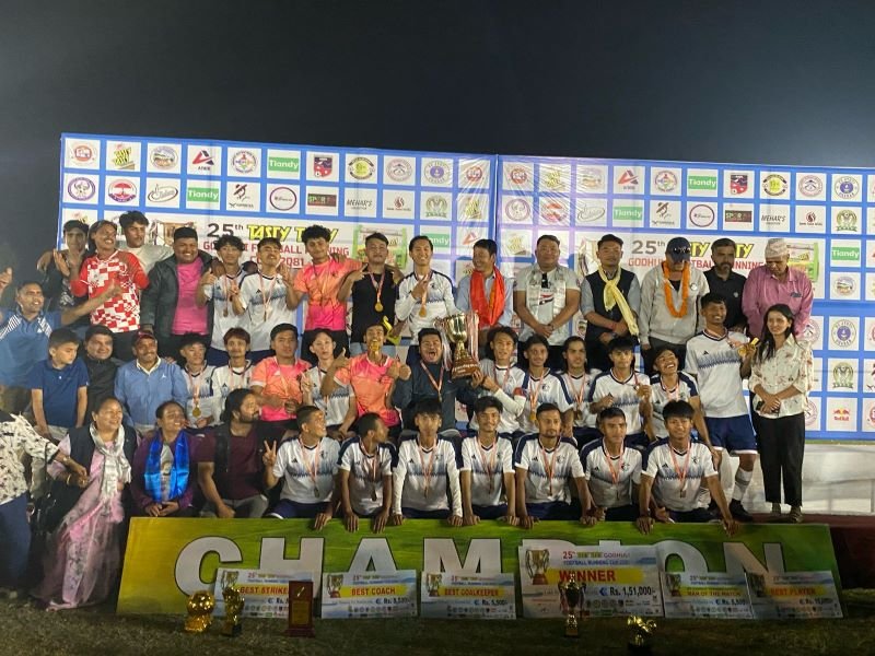गए राति धरान उपमहानगरपालिका–१६ स्थित रङ्गशालामा भएको फाइनल खेलमा धरान–१५ लाई १–० गोलअन्तरले पराजित गर्दै धरान–१४ ले उपाधि जितेको होे । खेलको ६१औँ मिनेटमा धरान–१४ का विवेक राईले गोल गर्दै टिमलाई अग्रता दिलाएका थिए ।