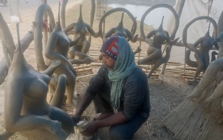 सरस्वतीको प्रतिमा बनाउन भ्याइनभ्याइ