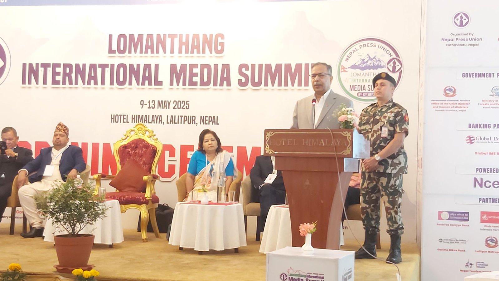 नेपाल प्रेस युनियन केन्द्रीय समितिद्वारा ललितपुरमा आज आयोजित लोमान्थाङ अन्तरराष्ट्रिय मिडिया समिटको उद्घाटन गर्दै उहाँले जलवायु परिवर्तनका कारण उत्पन्न सङ्कट नियन्त्रण तथा समाजमा चेतना फैलाउन मडियाले प्रभावकारी भूमिका निर्वाह गर्नुपर्नेमा जोड दिनुभयो ।