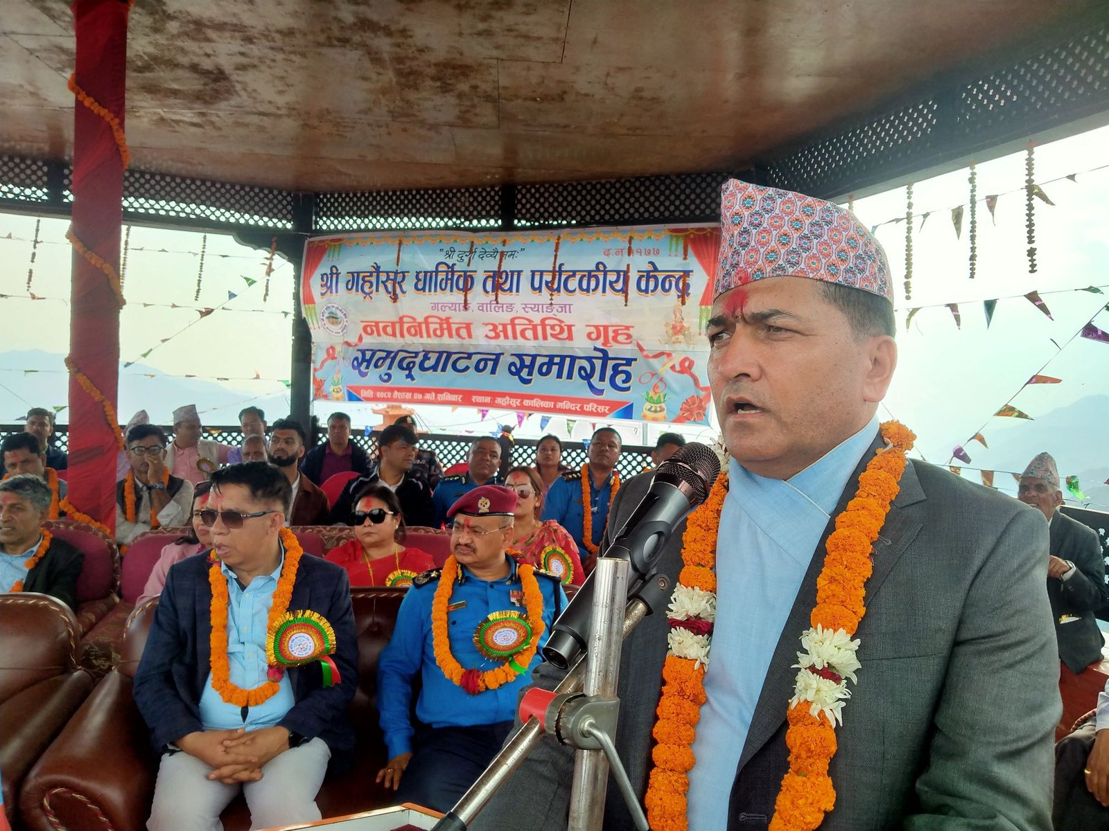 स्याङ्जाको वालिङ र गल्याङ नगरपालिकाको सङ्गमस्थलमा अवस्थित गह«ौँसुर मन्दिर परिसरमा नवनिर्मित अतिथि गृहको आज उद्घाटन गर्दै मुख्यसचिव अर्यालले विकासलाई राजनीतिभन्दा माथि राखेर कार्य गर्नुपर्नेमा जोड दिनुभयो ।
