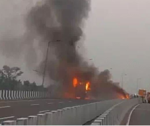 मोहनलालगञ्ज नजिकैको बाहिरी चक्रपथ (किसानपथ) मा बिहान ५ बजे सो आगलागी भएको हो । त्यतिबेला अधिकांश यात्रु सुतिरहेका थिए । बसमा एक्कासी धुवाँ निस्कन थालेको यात्रुले बताएका छन् । केही मिनेटमै ठुलो आगो निस्किएको थियो ।
