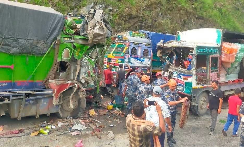 आज बिहान समयमा नारायणगढबाट मुग्लिनतर्फ जाँदै गरेको बागमती प्रदेश ०१-००६ ख ६२८७ नम्वरको ट्रक र मुग्लिनबाट नारायणगढतर्फ आउँदै गरेको ना ६ ख ९८९७ नम्वरको ट्रक एक आपसमा ठक्कर खाँदा सात जना घाइते भएका हुन् ।