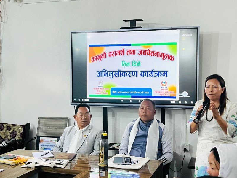 भोजपुर, १३ जेठ : महिला तथा बालहिंसा न्यूनीकरण गर्न यहाँको रामप्रसादराई गाउँपालिकाले कानुनी परामर्श तथा चेनतामूलक कार्यक्रम सञ्चालन गरेको छ । विपन्न, गरिब, सीमान्तकृत, अल्पसङ्ख्यक नागरिकहरूमा न्यायको पहँुच विस्तार गर्न कार्यक्रम गरिएको हो । कानुनी परामर्शको मध्यमबाट जनस्तरसम्म चेतना फैलाउने उद्देश्यले महिला जनप्रतिनिधि र विद्यार्थीलाई लक्षित गरेर कार्यक्रम सञ्चालन गरिएको गाउँपालिकाले जनाएको छ ।