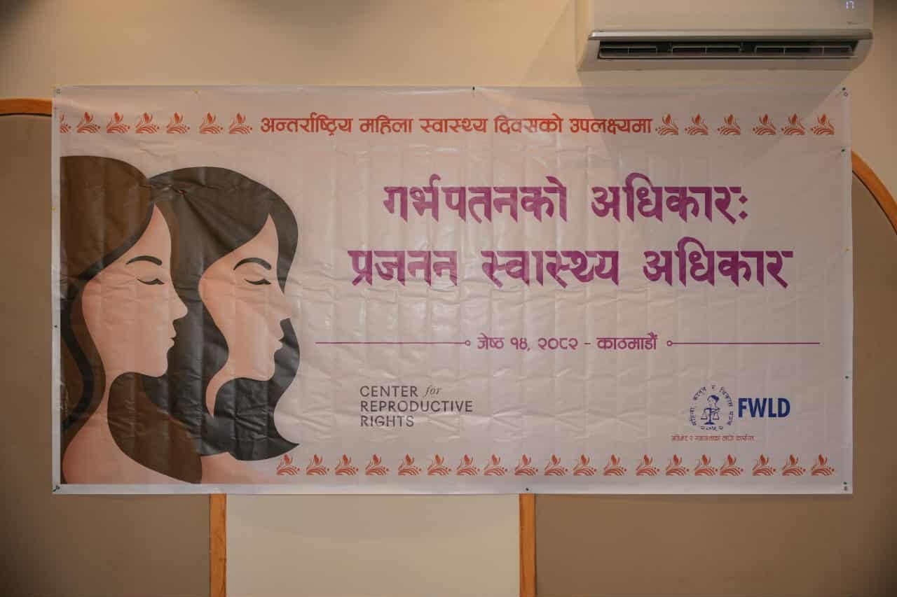 काठमाडौं । ‘गर्भपतनको अधिकारः प्रजनन स्वास्थ्य अधिकार’ विषयक सचेतना कार्यक्रम बुधबार सम्पन्न भयो । अन्तर्राष्ट्रिय महिला स्वास्थ्य दिवसका अवसरमा महिला, कानुन र विकास मञ्च (एफडब्लुएलडी) तथा सेन्टर फर रिप्रोडक्टिभ (सिआरआर)ले संयुक्त रुपमा आयोजना गरेको उक्त सचेतना कार्यक्रममा महिलाको गर्भपतन अधिकारलाई निरअपराधिकरण गर्नुपर्नेमा जोड दिइएको थियो ।