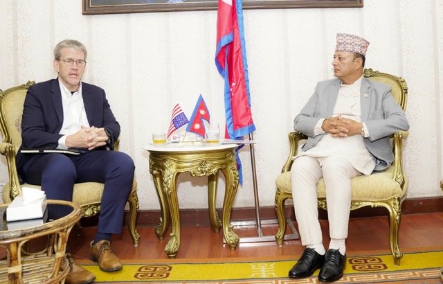 काठमाडौँ, १४ जेठ ः ऊर्जा, जलस्रोत तथा सिँचाइमन्त्री दीपक खड्कासँग नेपालका लागि अमेरिकी राजदूत डिन आर थम्पसनबीच भेटवार्ता भएको छ । ऊर्जा मन्त्रालयमा आज भएको भेटमा दुई देशबीचको ऊर्जा सहकार्य र मिलिनियम च्यालेन्ज कर्पोरेशन (एमसिसी) परियोजना कार्यान्वयनका विभिन्न पक्षमा छलफल भएको थियो ।