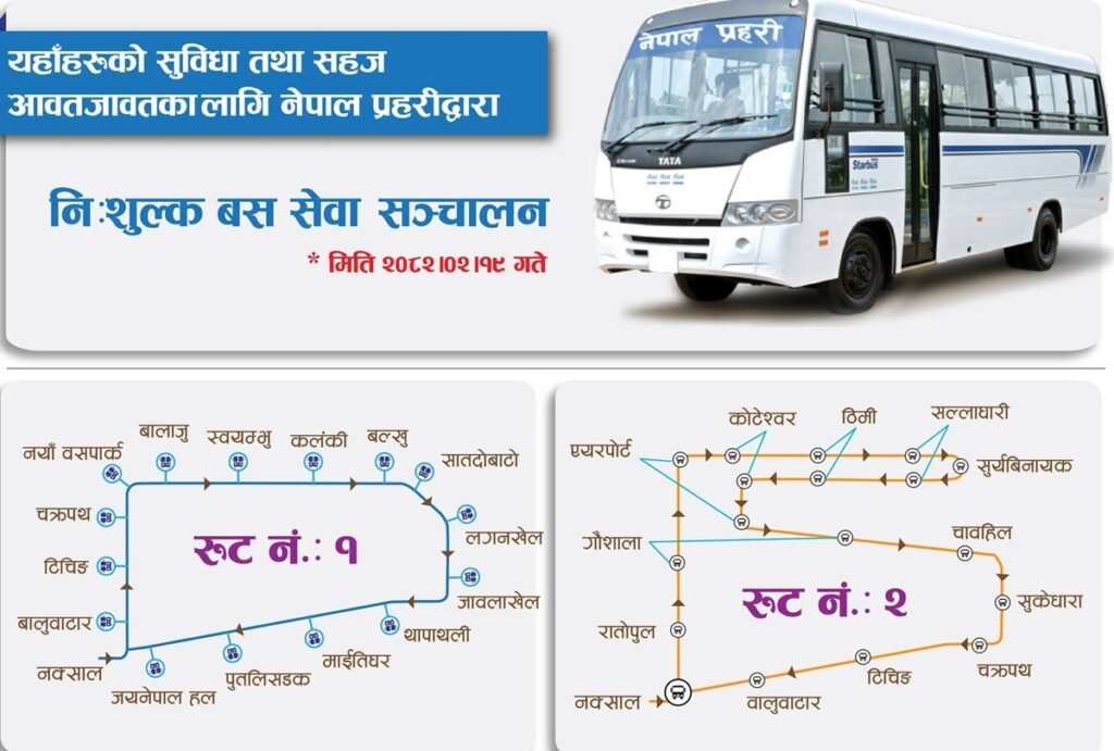 सर्वसाधारणलाई आवश्यक गन्तव्यसम्म पुर्याउने उद्देश्यले नेपाल प्रहरीको तर्फबाट अस्थायी रूपमा दुई बस सञ्चालन गरिएको प्रहरी प्रधान कार्यालयका प्रवक्ता एसएसपी रमेश थापाले जानकारी दिए। उनका अनुसार, “नागरिकलाई असहजमा पार्न नहुने भएकाले तत्काल सहयोगको व्यवस्था गरिएको हो।”