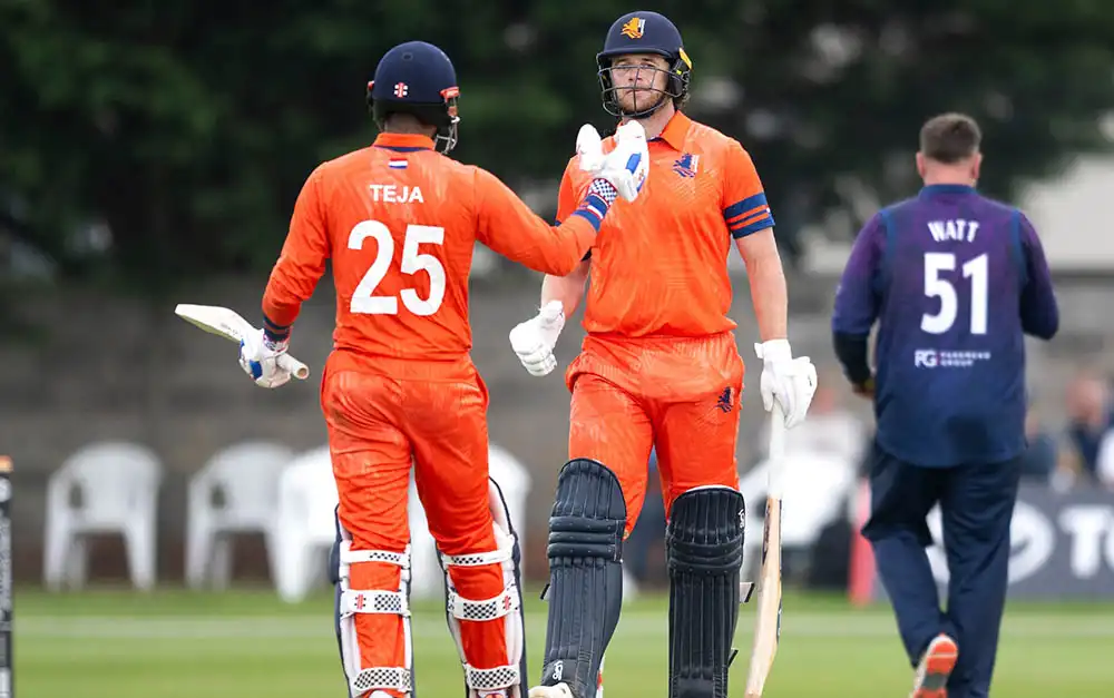 नेदरल्याण्डसका लागि म्याक्स ओ डाउडले सर्बाधिक अविजित १५८ रन बनाए भने तेजा निदामानुरुले ५१, नोआह क्रोएजले ५० र माइकल लेभिटले ४४ रन बनाएका थिए ।