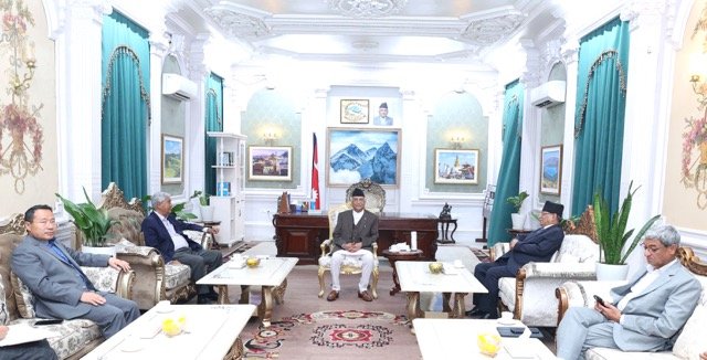 काठमाडौँ, ६ असारः सङ्क्रमणकालीन न्यायलगायत समसामयिक राजनीतिक विषयमा छलफल गर्न प्रधानमन्त्री केपी शर्मा ओलीसहित प्रमुुख तीन दलका शीर्ष नेताहरुको बैठक प्रधानमन्त्री तथा मन्त्रिरिषद्को कार्यालयमा प्रारम्भ भएको छ ।