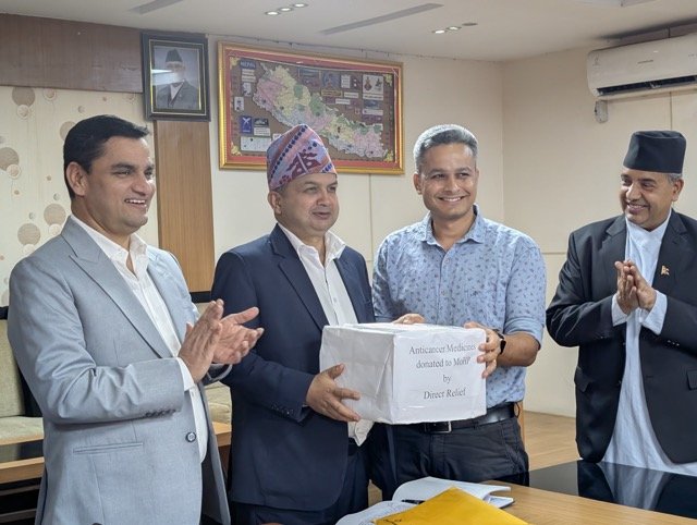 डाइरेक्ट रिलिफले स्तन, छाला तथा विभिन्न खालका क्यान्सर उपचारमा आवश्यक पर्ने दुर्लभ र महङ्गा औषधी नेपालको आवश्यकताअनुसार पाँच वर्षसम्म सहयोग स्वरुप उपलब्ध गराउने मन्त्री पौडेलले जानकारी दिनुभयो ।