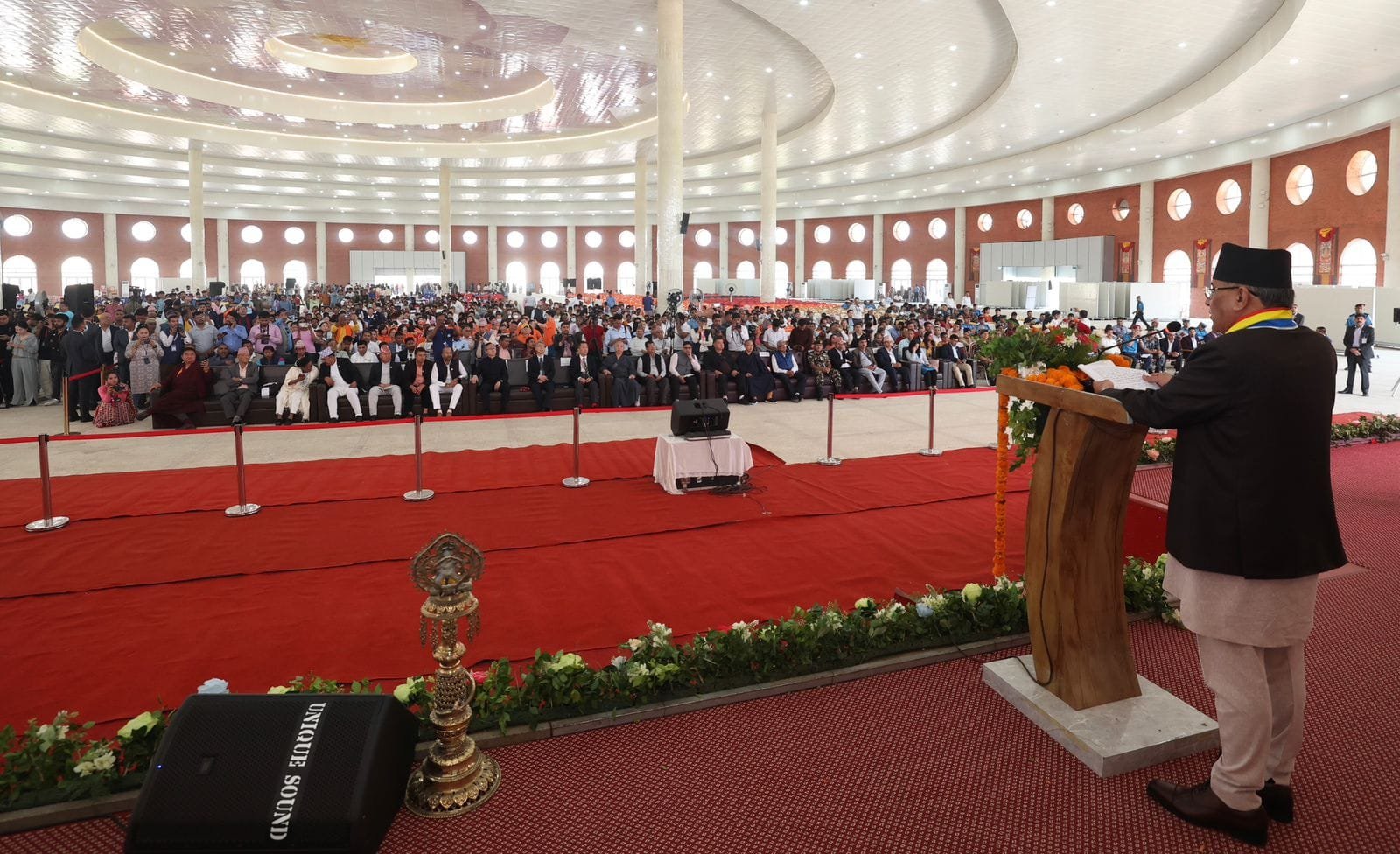 उहाँले आफ्नो मौलिक दर्शन र चिन्तन परम्परालाई नजरअन्दाज गरेर दर्शन, सभ्यता र समृद्धिको यात्रामा सफलता प्राप्त गर्न नसकिने बताउनुभयो । “ज्ञान र दर्शनको कुनै राष्ट्रिय सीमा हुँदैन, मानवजातिले विश्वभरि आर्जन गरेका ज्ञान र अनुभव हामी सबैका साझा सम्पत्ति र गौरवसमेत हुन्”, उहाँले भन्नुभयो, “हामीले हाम्रो विशिष्टता र मौलिकताको संवद्र्धन र विकास गरेर मात्र ज्ञानविज्ञानको क्षेत्रमा नयाँ पहल लिन सक्छौँ ।”