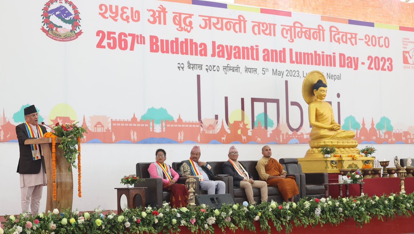 उहाँले भन्नुभयो “ लुम्बिनीको समग्र विकासका लागि सरकारले बृहत्तर लुम्बिनी गुरुयोजनाको कार्यान्वयन गरिराखेको छ । ” २५६७औँ बुद्ध जयन्तीका अवसरमा आज बुद्ध जन्मस्थल लुम्बिनीमा आयोजित मूल समारोहलाई सम्बोधन गर्दै उहाँले बुद्धसँग सम्बन्धित क्षेत्र लुम्बिनी, कपिलवस्तु, देवदह र रामग्रामका ऐतिहासिक र पुरातात्विक महत्वका सम्पदाको संरक्षण गरेर यस क्षेत्रको दिगो विकाससहित बृहत्तर लुम्बिनी क्षेत्रका रूपमा अघि बढाएकोे जानकारी दिनुभयोे ।