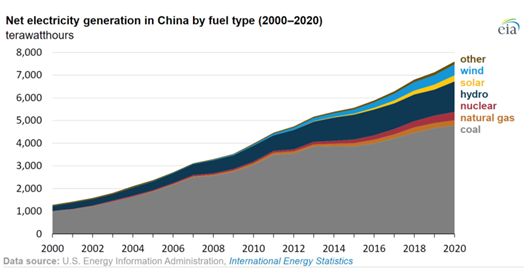 चीनले २०२१ मा अभूतपूर्व ऊर्जा संकट को सामना गर्यो, जसले व्यवसाय, उद्योग र मानिसहरूको समग्र जीवनलाई असर गरेको थियो र अझै पनि गरिरहेको छ । त्यसैले बेइजिङले ऊर्जा सुरक्षा हासिल गर्न नयाँ कोइला प्लान्टहरू स्वीकृत गर्ने निर्णय गरेको छ। चीन विश्वमा सबैभन्दा बढी कार्बन उत्सर्जन गर्ने देश हो। यो २०२० मा १०६६८ मिलियन मेट्रिक टन उत्सर्जनको साथ सबैभन्दा ठूलो उत्सर्जनकर्ताहरूको सूचीमा शीर्ष स्थानमा थियो। र अब सन् २०२१ मा चीनको कार्वन उत्सर्जन ६ प्रतिशतले बढेको हो । विश्वमा मानव निर्मित हरितगृह उत्सर्जनको एक तिहाइ हिस्सा ओगटेकोले चिनियाँ उत्सर्जन गम्भीर समस्या बनेको छ।